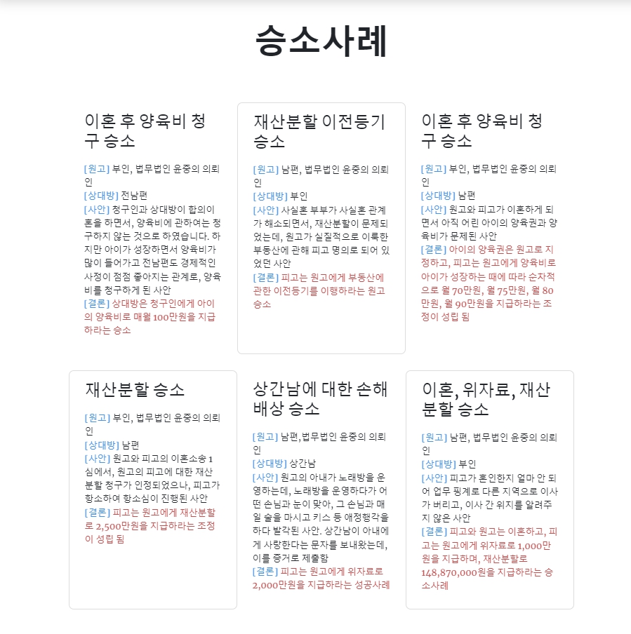 각기 다른 사연 속에서도 의뢰인의 입장에서 최선의 결과를 이끌어왔습니다.
